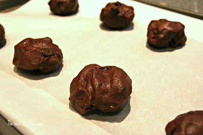 Hold 3 frozen marshmallows in the palm of your hand. Scoop batter up by generously rounded tablespoonfuls and mold around marshmallows, covering marshmallows completely.